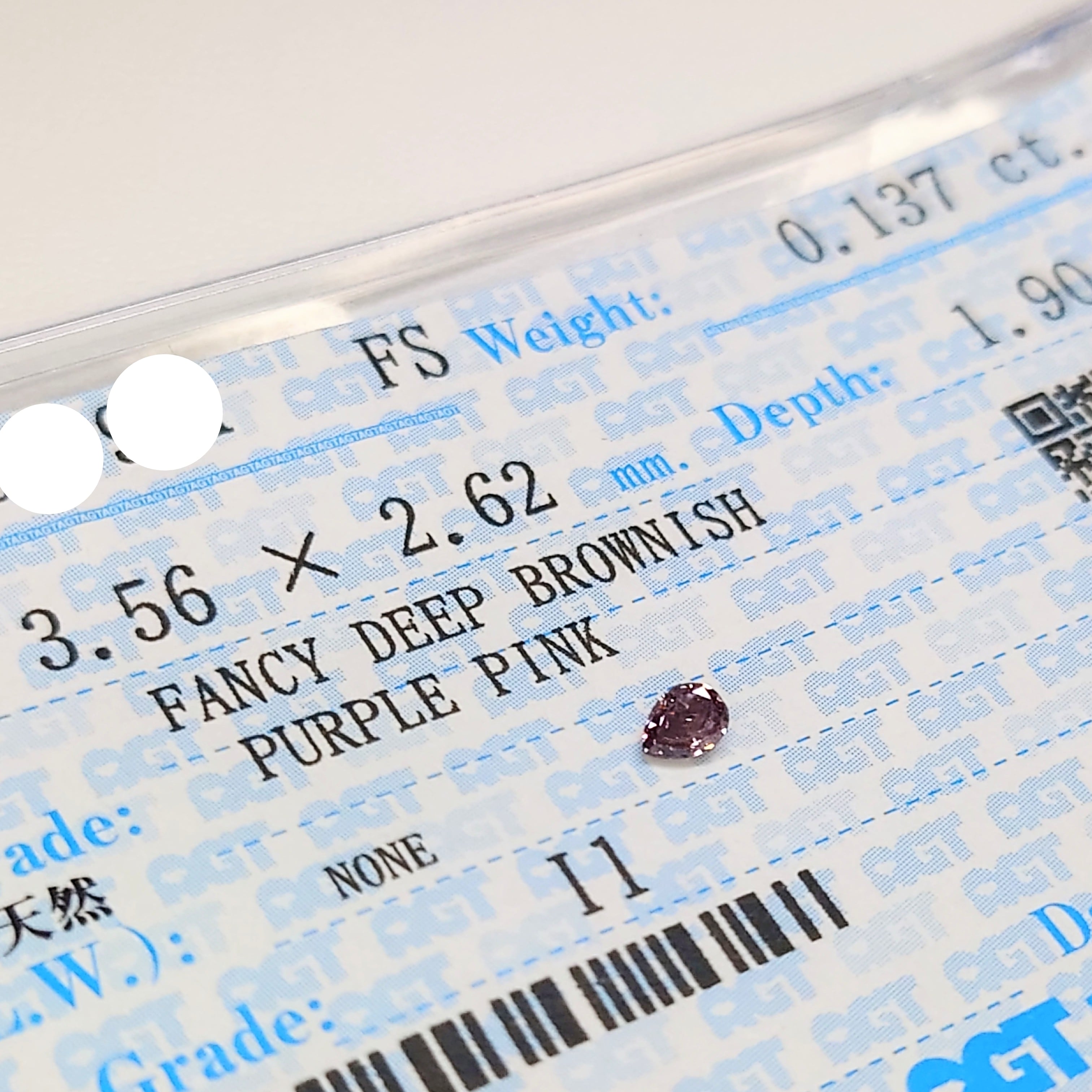 Fancy Deep Brownish Purple Pink 0.137ct I-1 天然ピンクダイヤモンドルース☆