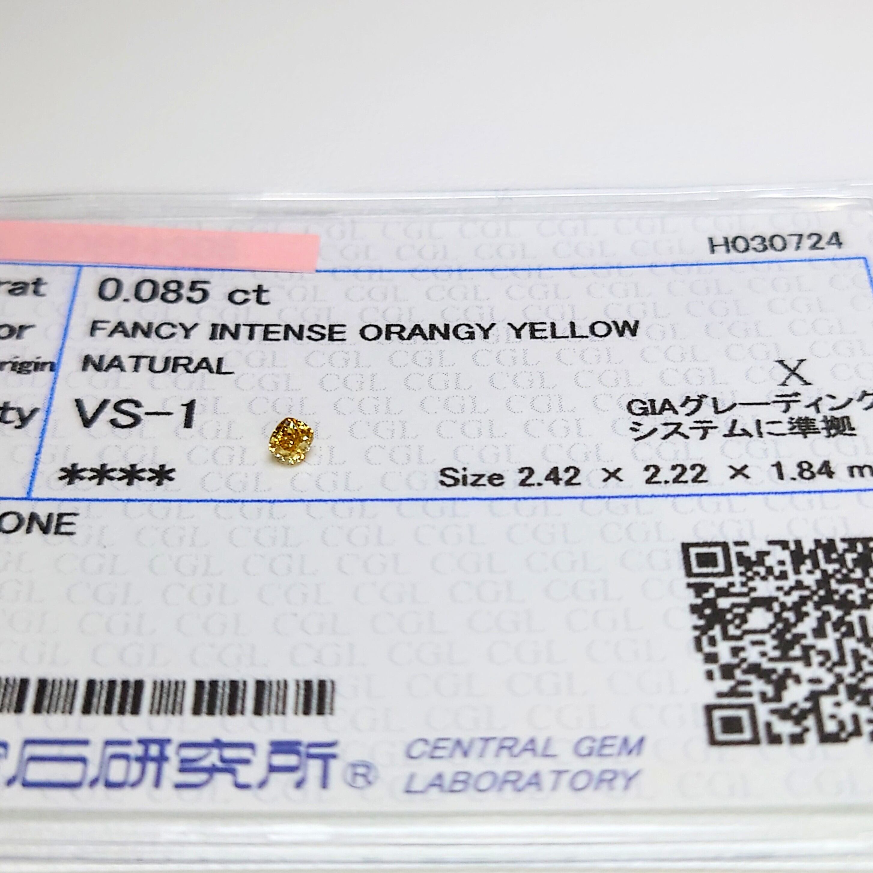Fancy Intense Orangy Yellow 0.085ct VS-1 天然イエローダイヤモンド ルース☆