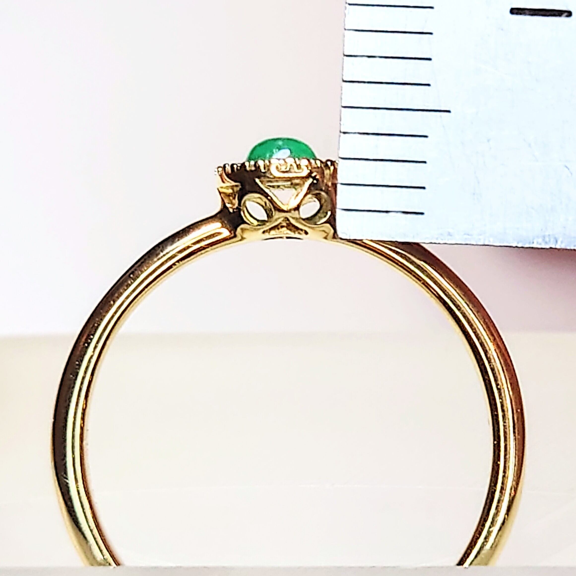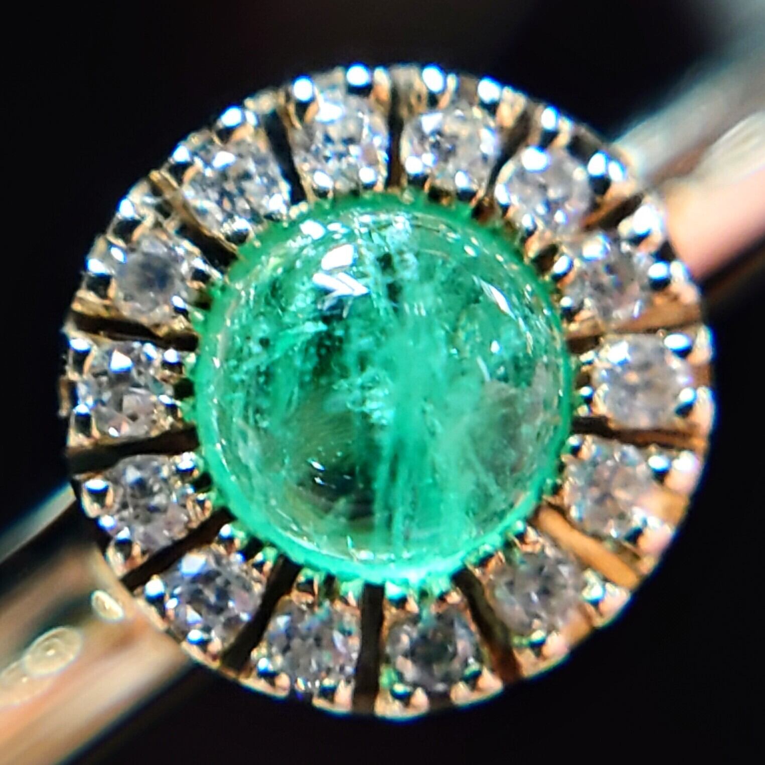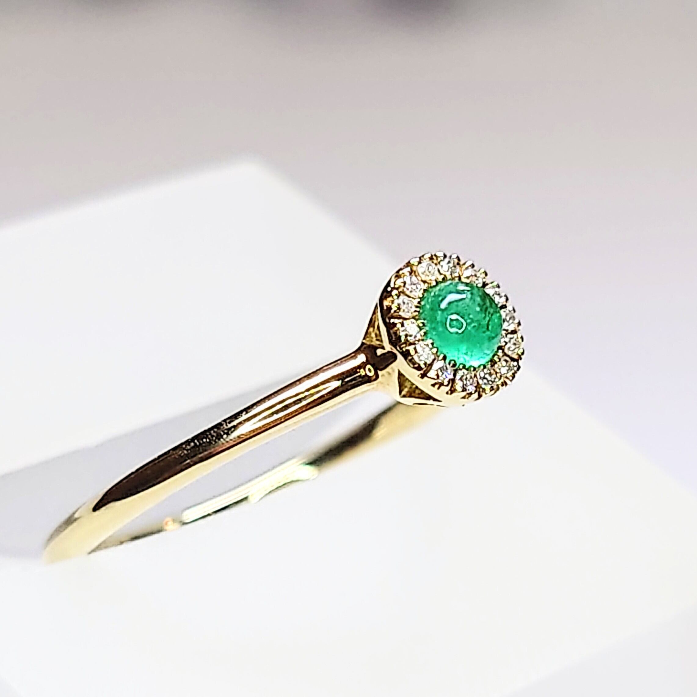 Emerald cabochon cut K10YG Dia 0.06ct Ring☆
