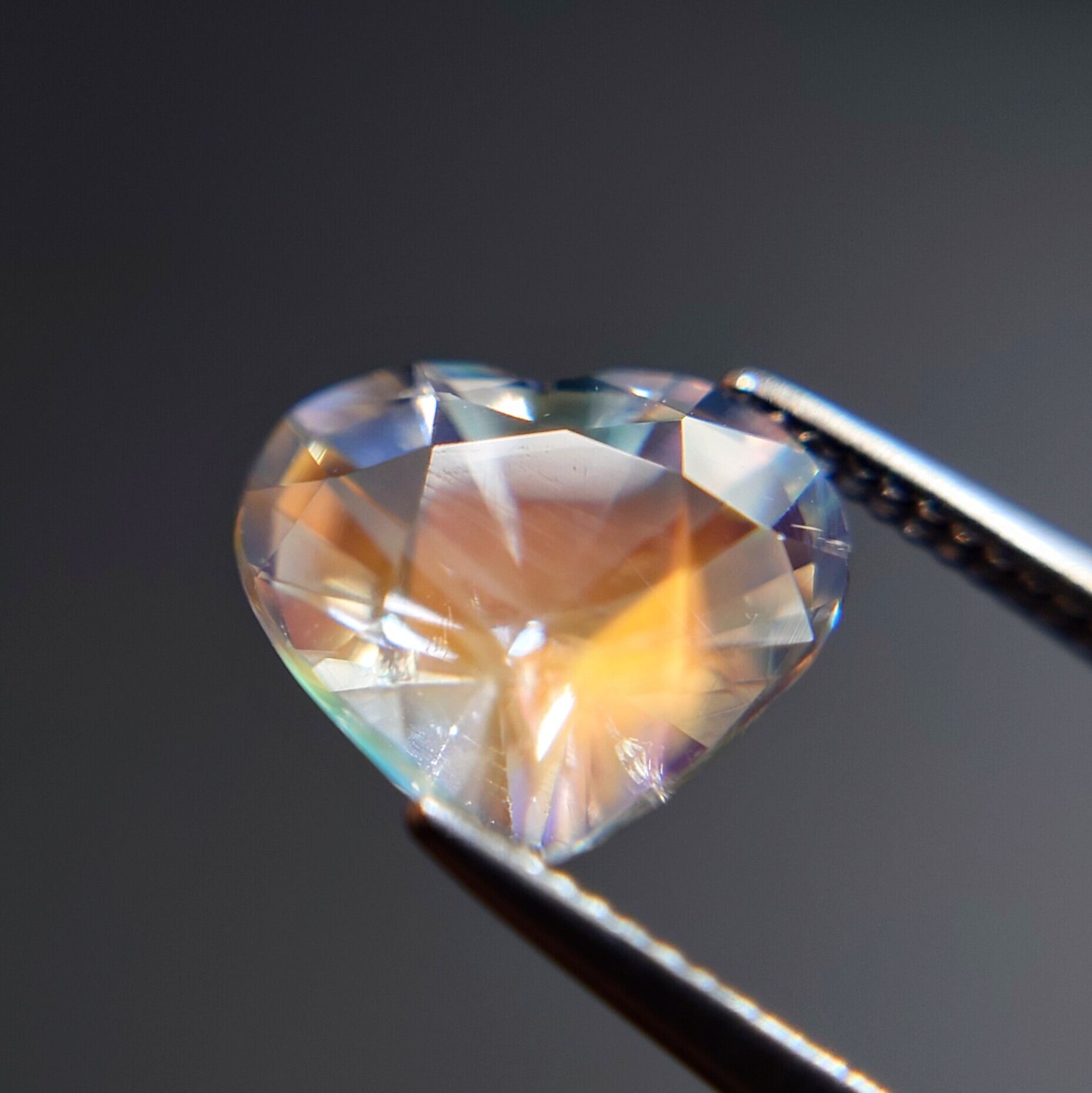 フェルスパー(長石)に属する美しいシラーを見せてくれる宝石で、その凛とした薄乳白~透明なルースから突然オーロラのようなシラーを魅せてくれます♪