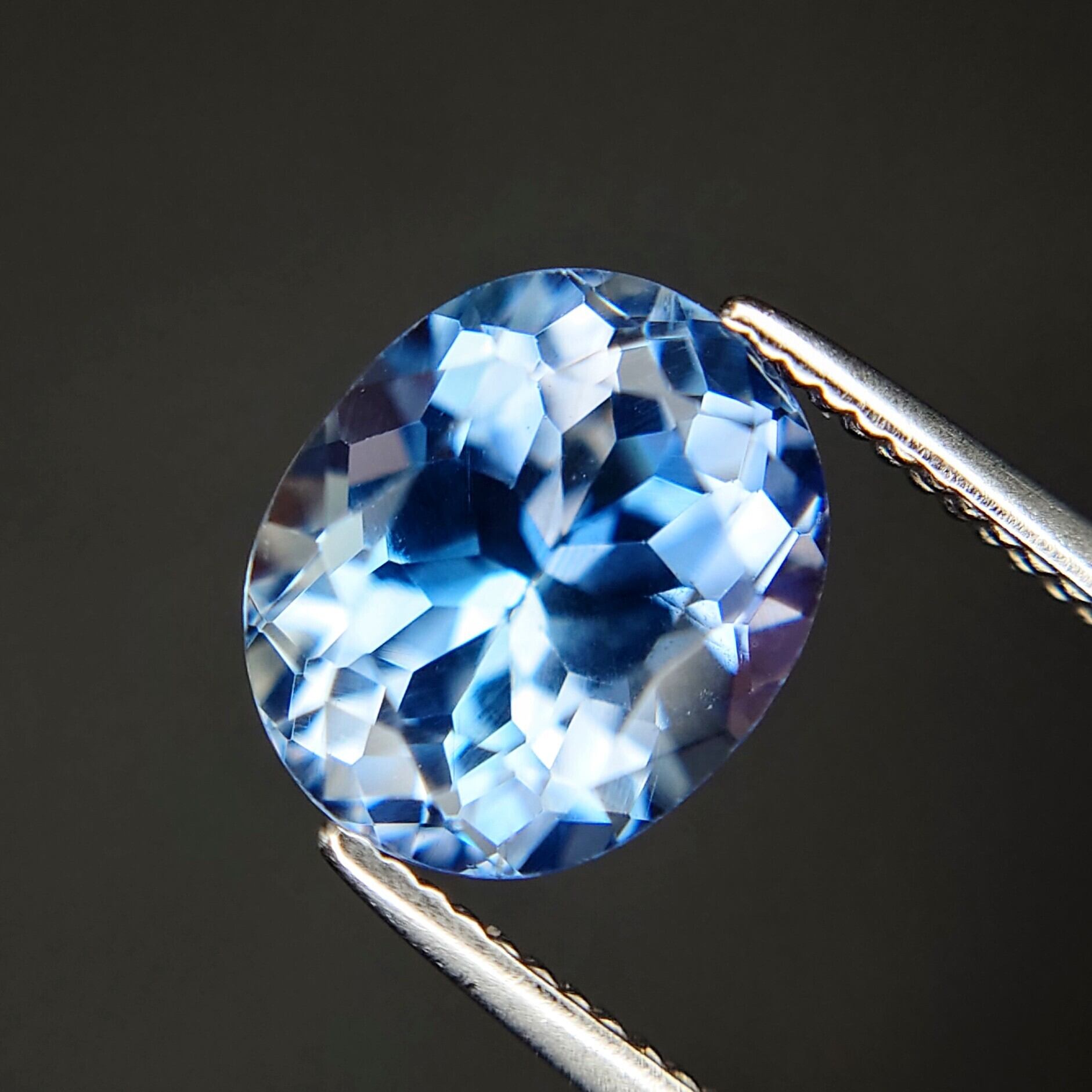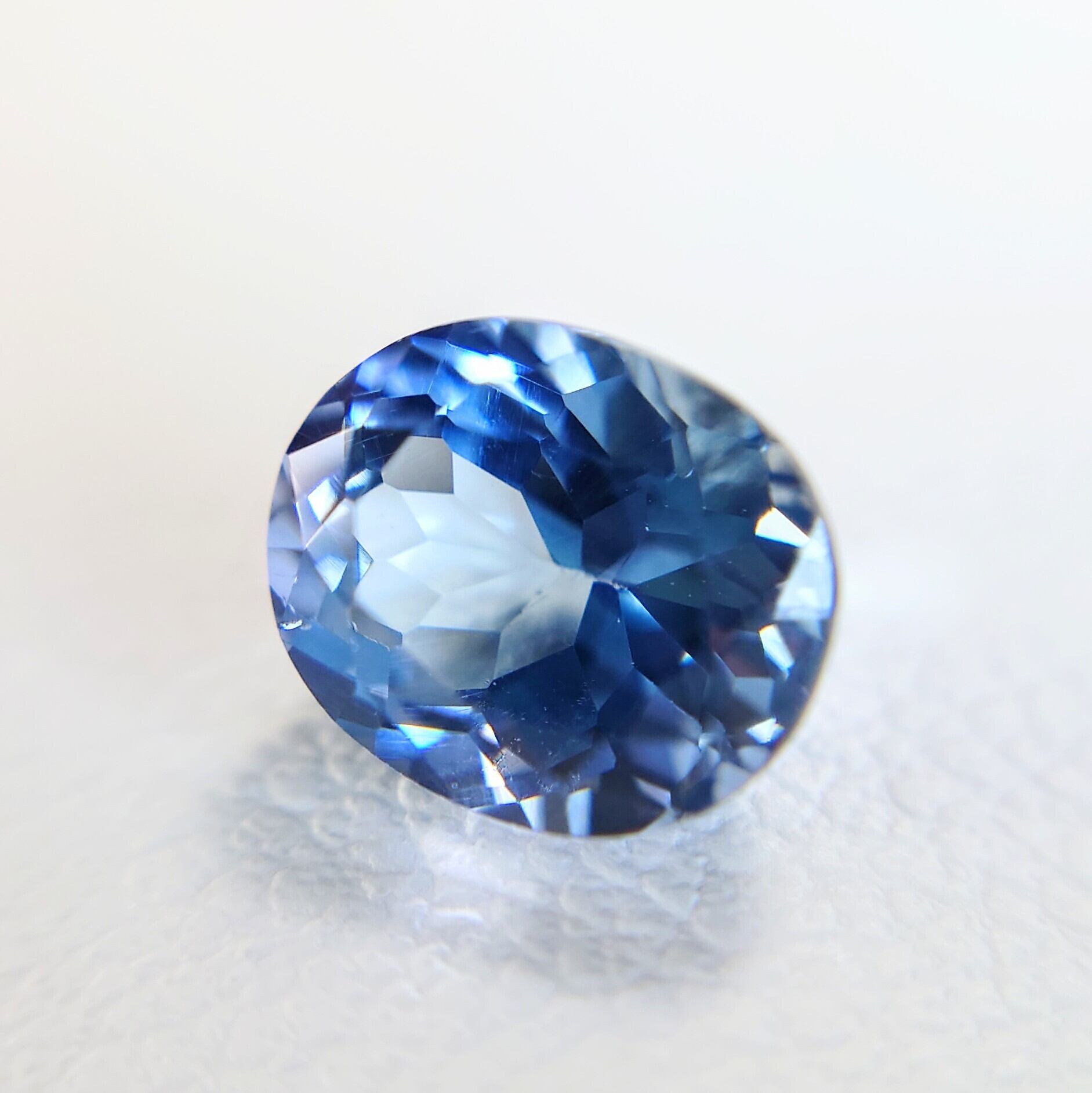 産地の特定は行っておりませんが、こちらのブルーアパタイトはインディゴ系のブルーの地色、多色性も強く、蛍光性もあり、何とも言えないホワイトとピンクが混ざりあった色に♪