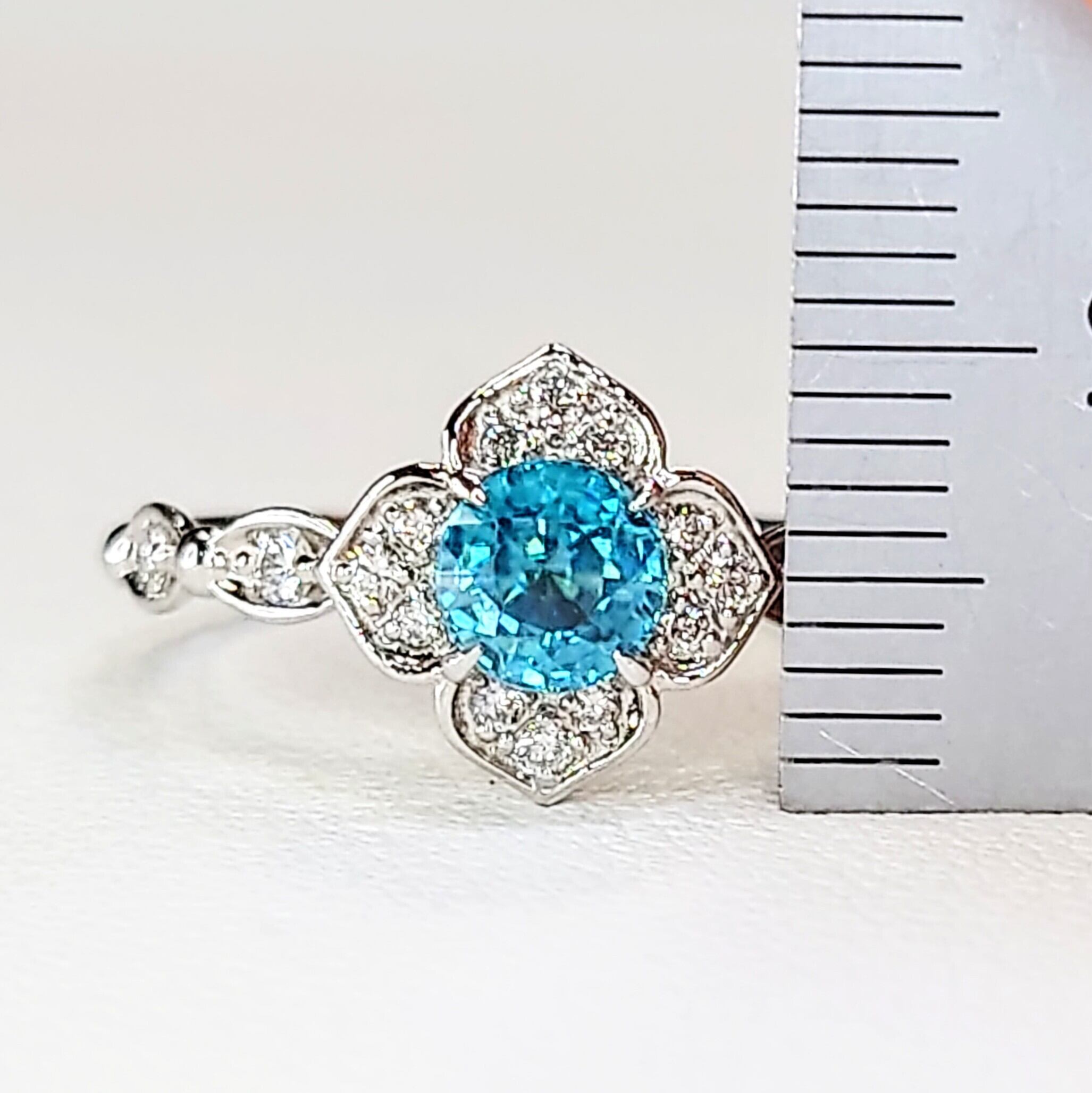 産地は特定出来ないものの、過去に流行った色の濃いブルージルコンに特徴が似ておりとても強いファイアと共にそのクリアさがとても美しいリングです♪♪♪