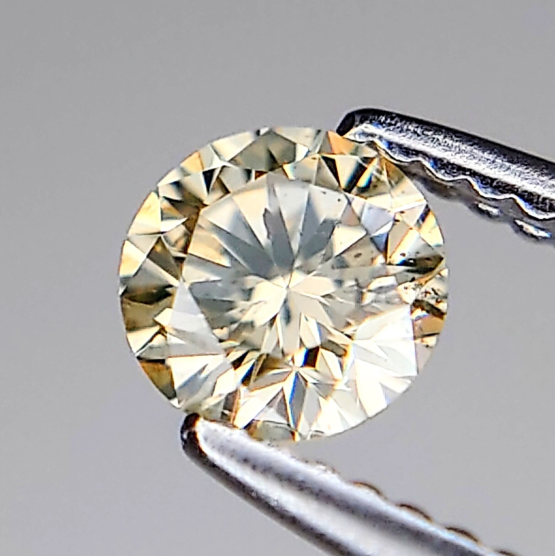 輝りの良いラウンドブリリアントカットで、シャンパンカラーの輝きです♪