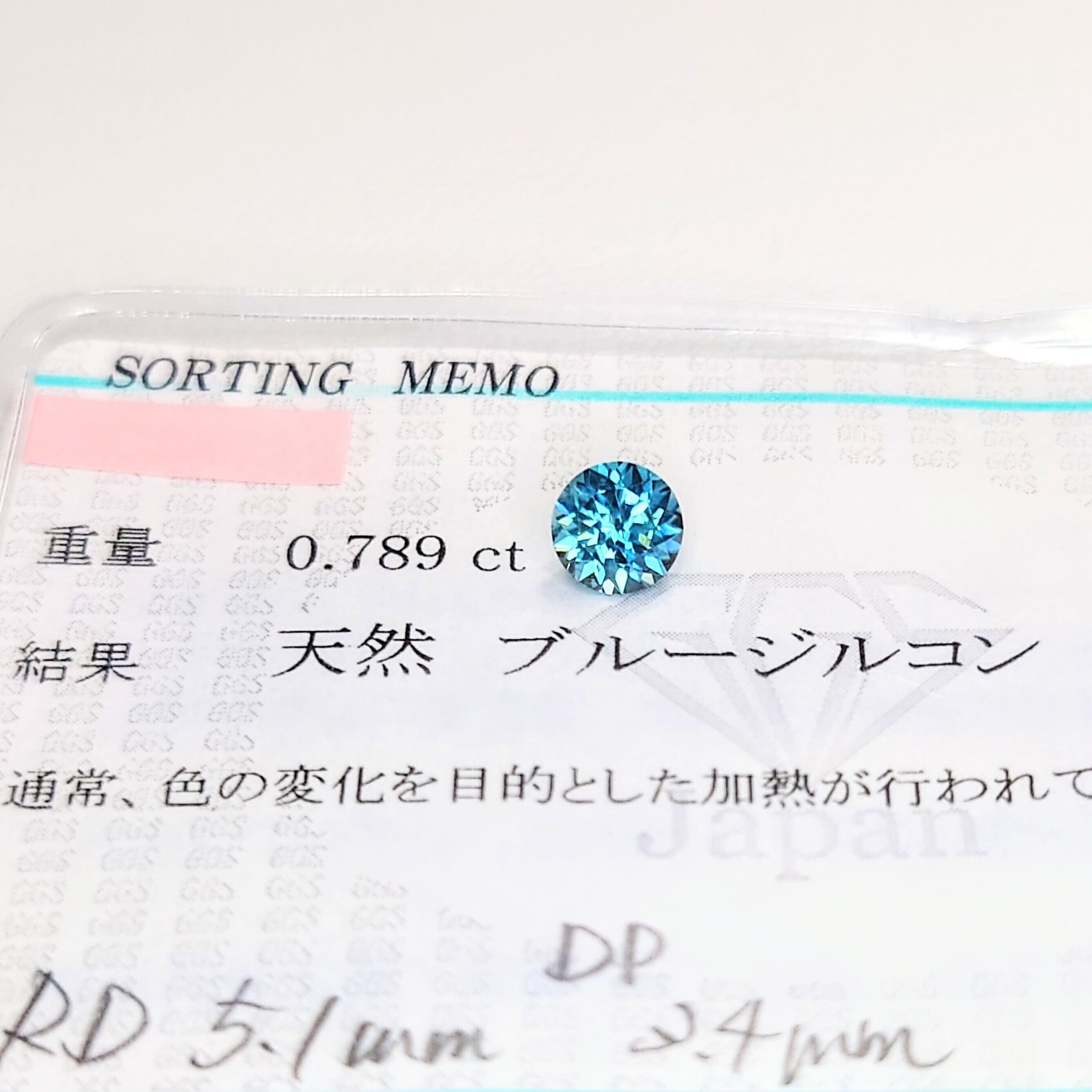 Blue Zircon 0.789ct 5.1mm GGSソ付 ルース☆
