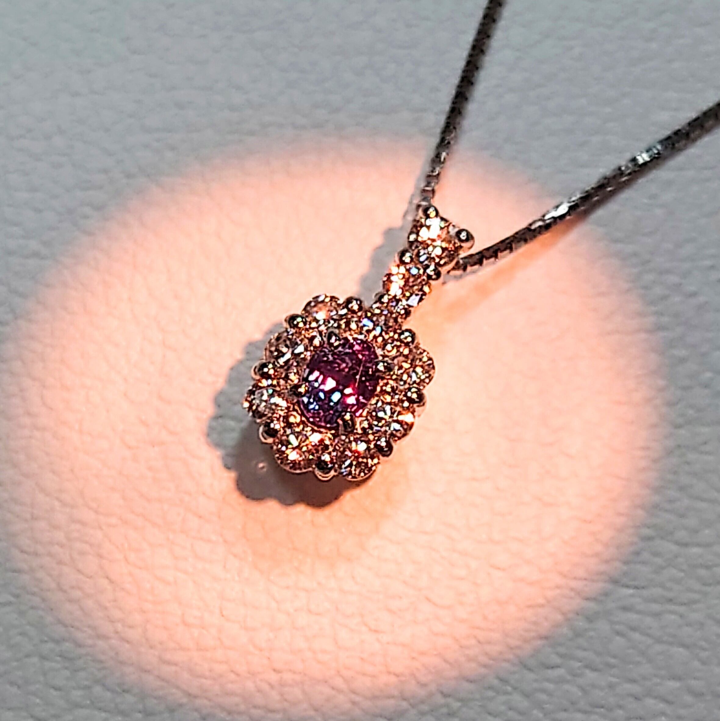 色乗り、色変わりの良いアレキサンドライトと、クリアで輝りの良いダイヤモンドのコントラストが美しいペンダントネックレス♪♪♪
