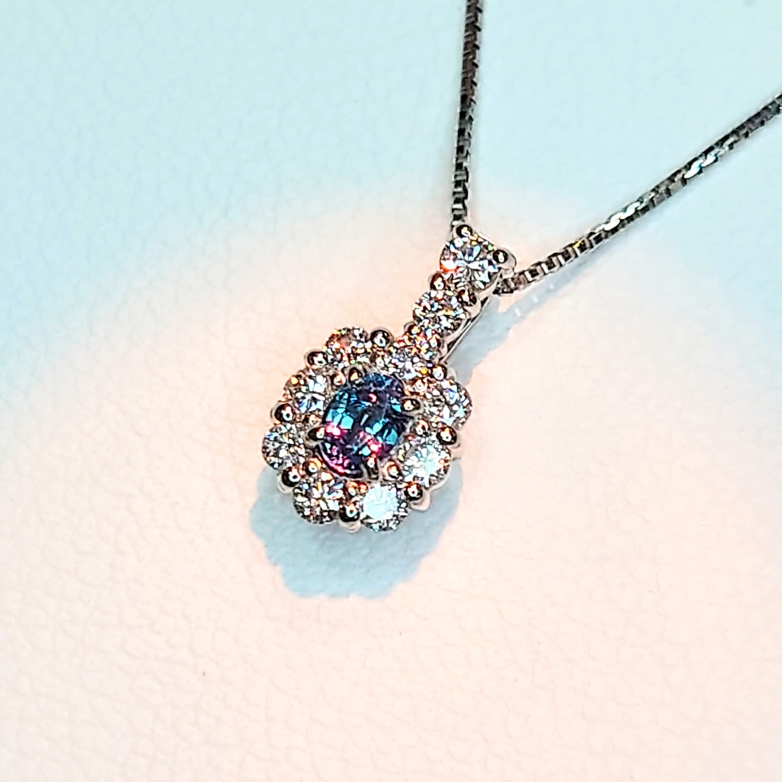 天然アレキサンドライト&天然ダイヤモンドペンダントネックレス