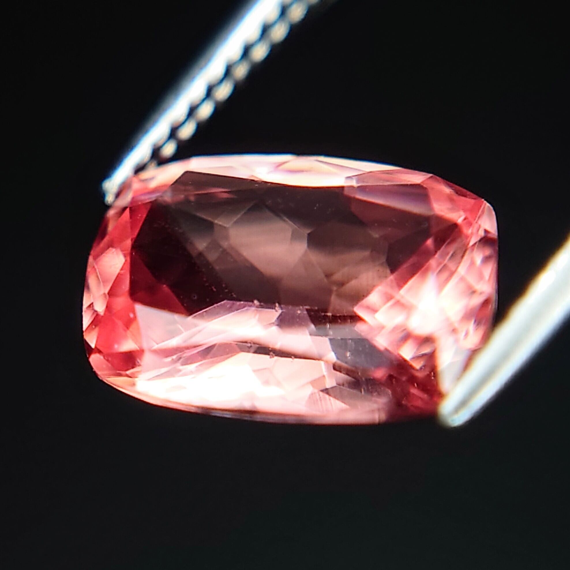 中国産のロードクロサイトはサーモンピンクでミルキー不透明なものが多い中こちらのルースはとてもクリアで明るいサーモンピンクカラー♪
