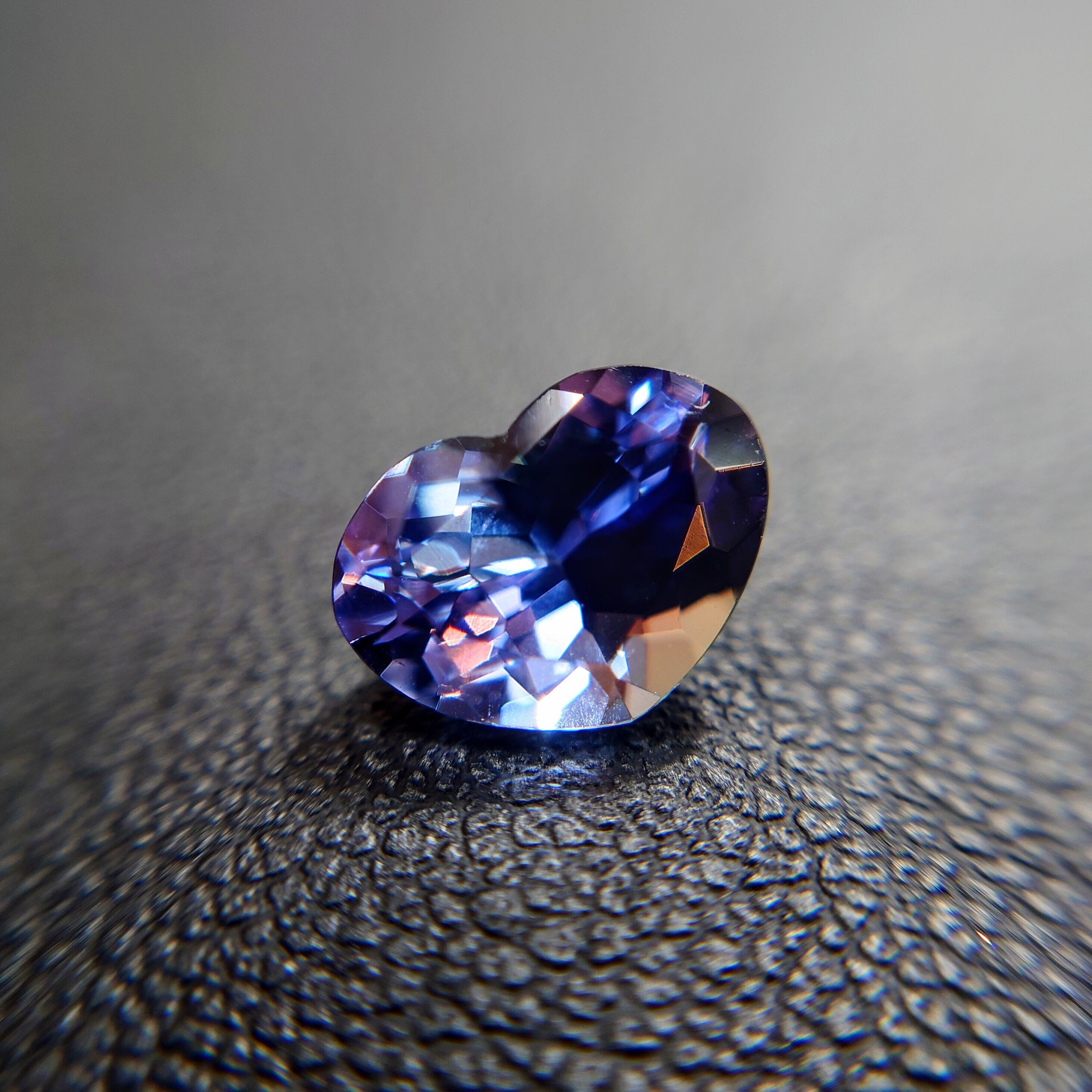 こちらのタンザナイトはブルーとパープリッシュのパステル感のあるカラーで、シェイプはコロンと可愛らしいハート モディファイド ブリリアント カット♪