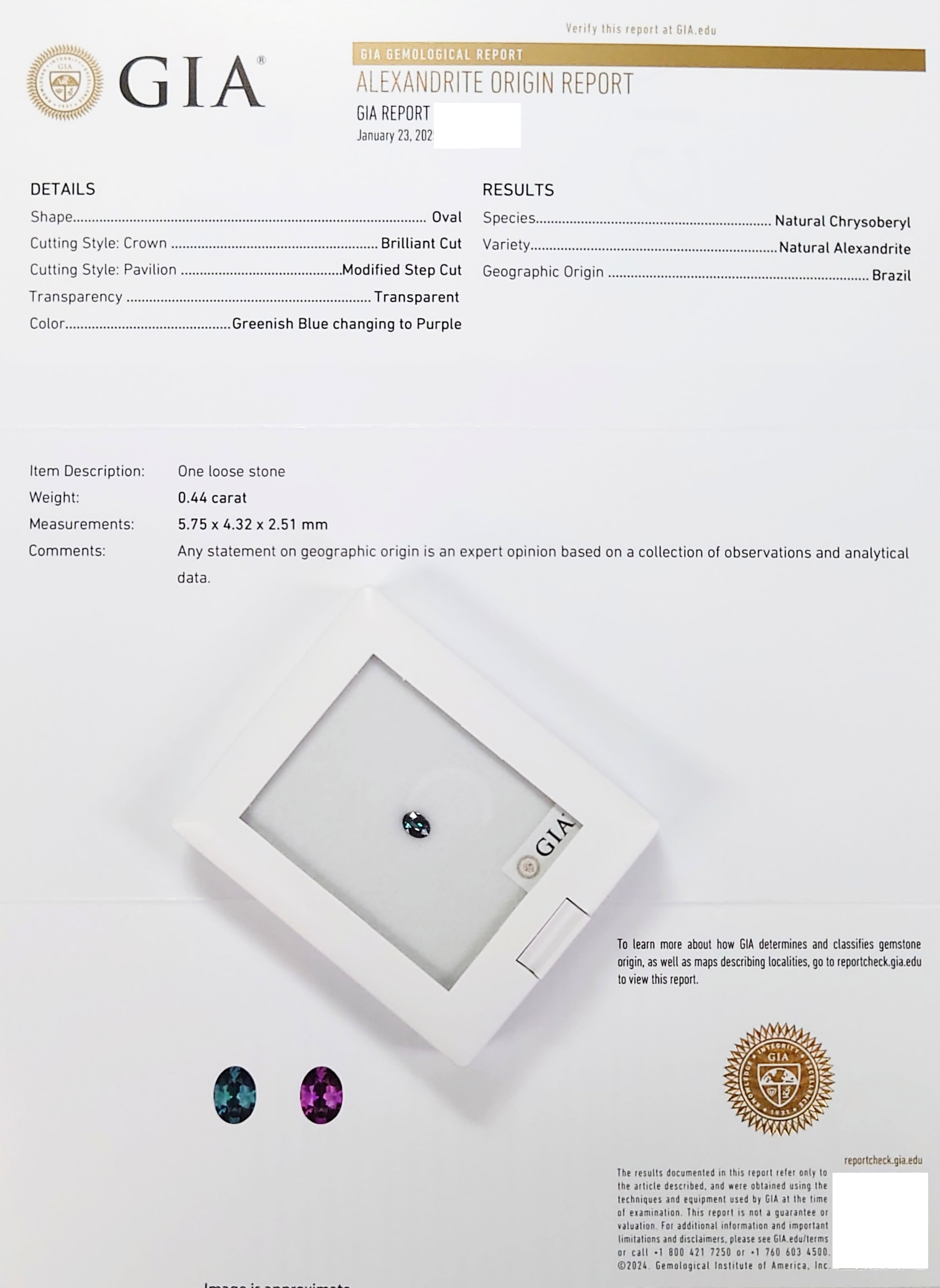 高品質 Alexandrite 0.44ct Brazil GIA産地鑑別書付 ルース☆
